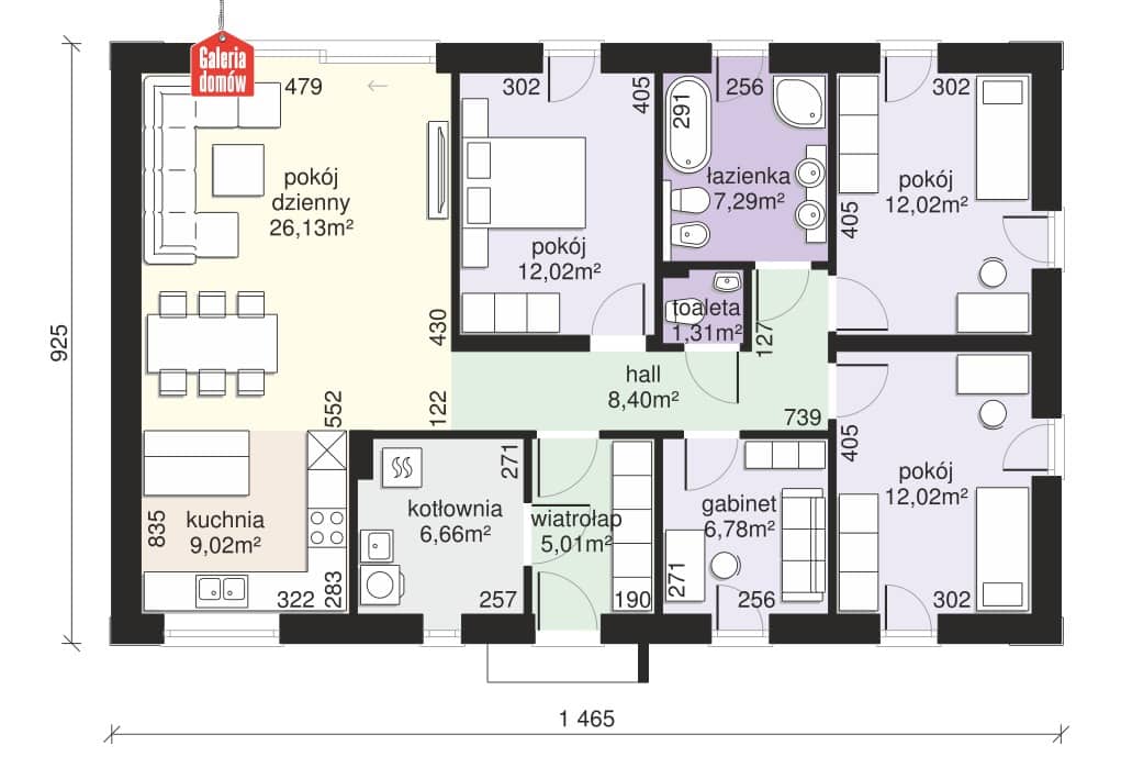 Dom przy Olchowej 4 to elegancki i funkcjonalny projekt parterowego domu jednorodzinnego, idealny dla osób ceniących komfort i klasyczny styl. Prosta bryła z dwuspadowym dachem oraz jasna elewacja nadają mu ponadczasowy charakter. Wnętrze zostało zaprojektowane z myślą o wygodzie mieszkańców – przestronny salon z aneksem kuchennym stanowi serce domu, a dobrze doświetlone sypialnie zapewniają prywatność i wygodę. To doskonała propozycja dla rodzin szukających harmonijnego połączenia estetyki i funkcjonalności.